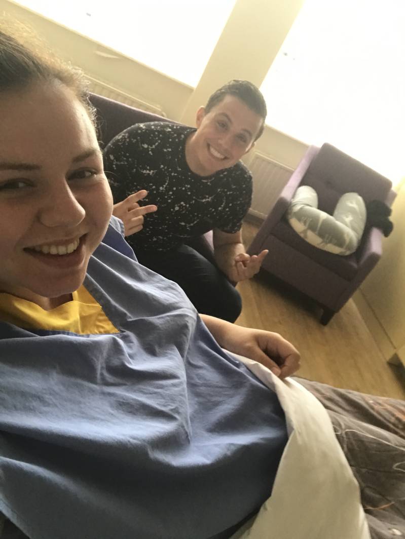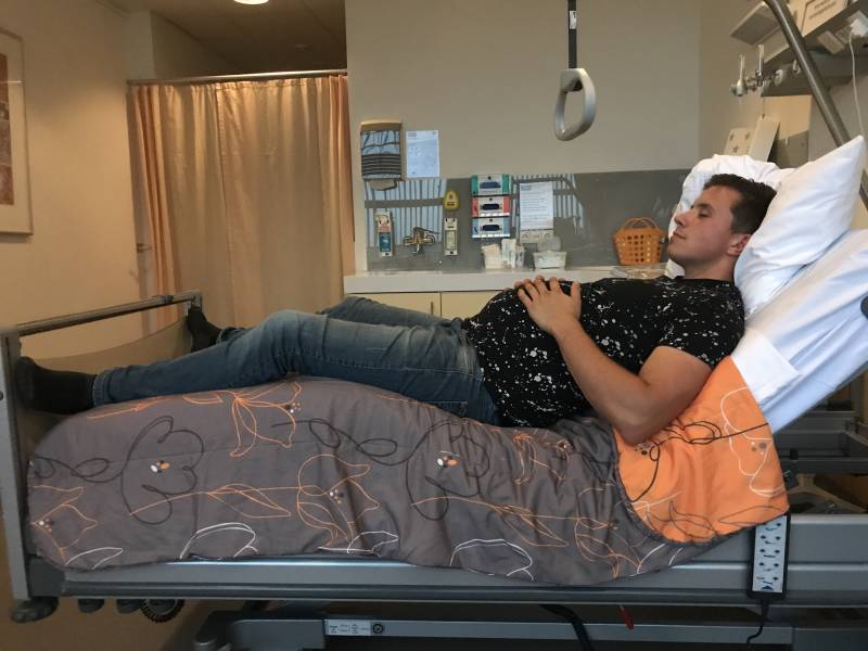 31 Augustus 2017. Vandaag was het dan zover, Benjamin zou geboren worden! Om 8 werd ik opnieuw aan de ctg gelegd. De artsen kwamen kort daarop langs met goed nieuws, ik was om 9 uur ingepland! Ik mocht nog even snel douchen en dan zou ik naar de OK worden gereden. Na een korte douche en 3 wc bezoekjes verder, want ja ik was natuurlijk stikzenuwachtig, werd ik in mijn zeer flatteuze nachtjapon gehesen en moest ik in bed gaan liggen totdat ik opgehaald werd. Even later kwam de verpleegkundige binnenlopen met slecht nieuws; er was een spoedgeval tussendoor gekomen en ik werd opgeschoven. Het kon wel 4 uur s’middags worden voordat ik geholpen werd. Dan zit je er wel eventjes doorheen. Je voelt je niet goed en je weet dat het voor je kind ook geen ideale situatie meer is, plus het feit dat je ook nog eens niet mag eten en drinken wat mij ook behoorlijk chagrijnig maakt. Gelukkig was mijn zus daar, die de hele dag bij me is gebleven, en natuurlijk s’werelds beste vriendje die ook niet van mijn zijde is geweken. Uiteindelijk kwam het verlossende woord om 2 uur, ik mocht mee naar de OK! Daar aangekomen moest ik afscheid nemen van Peter, maar dat duurde niet lang. Ik lag op de voorkamer en na 5 minuten kwam er iemand naar me toe, er was weer een spoedgeval tussen gekomen. Gelukkig mocht Peter bij me blijven want het kon wel even gaan duren. Hij werd in een operatiepakje gehesen en mocht naast mij plaats nemen. Om 3 uur was het dan zo ver, ik werd echt de OK ingereden en nu kon het niet meer mis gaan. Oorspronkelijk mocht Peter er niet bij zijn omdat ik onder volledige narcose werd gebracht, maar omdat hij nu toch al z’n operatiepakje aan had mocht hij toch meelopen! Ik werd op de operatietafel gelegd en de voorbereidingen begonnen. Incisielijn werd getekend, slangetjes werden aangekoppeld en een katheter werd geplaatst. Ondertussen hield ik het niet meer van de zenuwen en trilde bij wijze van speken bijna de tafel af. Kapje op en tel maar tot 10.