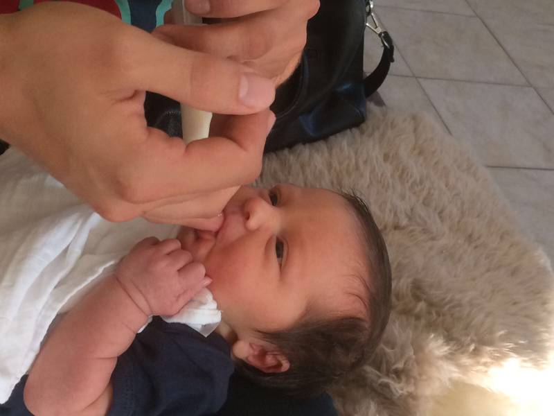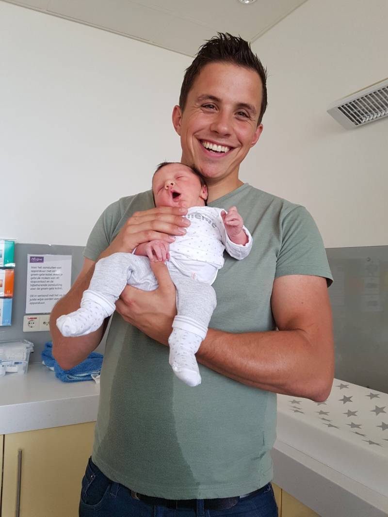 1 September 2017. De eerste nacht zijn we prima doorgekomen en hebben we heerlijk geslapen, nouja Peter en Benjamin dan. Benjamin lag op mijn borst te slapen van 3 tot 6 en ik was veel te bang dat als ik in slaap zou vallen ik Benjamin zou laten vallen, dus dan maar geen slaap! Daar moet je als kersverse moeder tenslotte toch aan wennen dus geen probleem, dat deed ik wel even. Om 6 uur direct weer aan de borst gelegd en dat leek prima te gaan! En iedereen maar zeggen dat borstvoeding geven niet zo makkelijk was, nou dit viel toch reuze mee? Dat bleek een paar uur later helaas niet het geval. Mijn katheter mocht eruit en het infuus werd losgekoppeld. Ik kon nog even douchen en daarna gingen we het voeden weer proberen. Tijdens deze douche werd Peter overigens voor het eerst volledig ondergeplast, een goede les: knuffel nooit een pasgeboren baby als hij geen luier om heeft! Maargoed, het voeden. Benjamin was het er niet mee eens. Hij wilde niet meer aanhappen, en als hij het wel probeerde dan lukte het niet. Gefrustreerde mama en gefrustreerd kind, geen goede combinatie. Ik ging aan het kolfapparaat en de melk die er uit kwam, wat in het begin nauwelijks iets was, gaven wij via een spuitje en een pink aan Benjamin. Natuurlijk had ik het liever anders gezien, maar het belangrijkste was dat Benjamin de borstvoeding binnen kreeg dus als dat niet op de normale manier zou gaan dan was dat maar zo. In de middag weer een aantal keer geprobeerd aan te leggen maar het ging helaas echt niet lukken, en daarom werd ik ‘s avonds weer aan het kolfapparaat gelegd. “Ik sluit je aan en hij stopt vanzelf over een kwartier, dan kom ik weer naar je toe!” is wat de verpleegster zei. Een half uur later kwam ze de kamer weer in. “Oh, zit je er nog steeds aan?” Wij hadden de tijd niet echt in de gaten gehouden en omdat het de eerste keer ook al pijn deed had ik niet door dat het nu anders was. Mijn tepels waren kapot en ik wilde niet meer, maar ik ging wel door, wat mijn kind moest en zou borstvoeding krijgen en de pijn die ik erbij had die nam ik maar voor lief. De keren daarop ben ik er dan ook met goede moed mee doorgegaan. De volgende ochtend hebben we Benjamin voor het eerst in bad gedaan, en hij vond het heerlijk. Ik heb nog even snel gekolfd en na goedkeuring van de artsen mochten wij naar huis! Op de terugweg zijn we nog even bij de Prenatal gestopt voor een kolf en bijbehoren, die spullen had ik allemaal nog niet in huis omdat ik er vanuit ging dat het met de borstvoeding allemaal goed zou gaan! Eenmaal thuis kwam er een tijdelijk kraamhulp die ons alvast wat wilde uitleggen om de eerste nacht alleen door te komen, de volgende dag zou onze vaste kraamhulp komen. Benjamin werd gewogen en bleek net op de grens te zitten van het wel of niet bijvoeden. Uiteindelijk besloten we dit toch maar wel te doen, zo kon mijn lichaam ook weer even bijkomen en zouden we de volgende dag weer met goede moed gaan kolven!